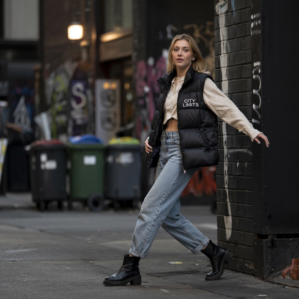 - How I Style Them: I let light-wash barrel jeans fall over black chunky boots, pairing them with a cropped sweater and puffer vest for a bold look. The boots’ heft complements the jeans’ curve.