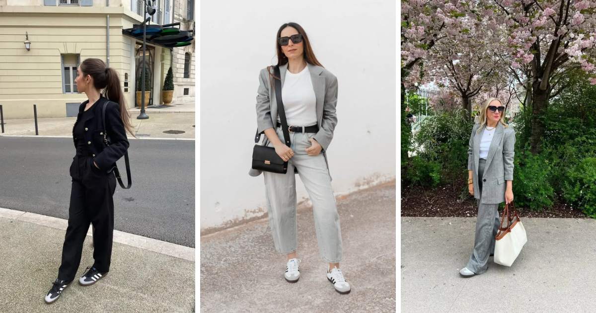 Business casual doesn’t have to mean boring — and these looks prove it. With a pair of Adidas Sambas, you can strike the perfect balance between professional polish and everyday comfort. Whether it’s blazers, midi skirts, or wide-leg trousers, these sneakers adapt to your style while keeping things modern and fresh.