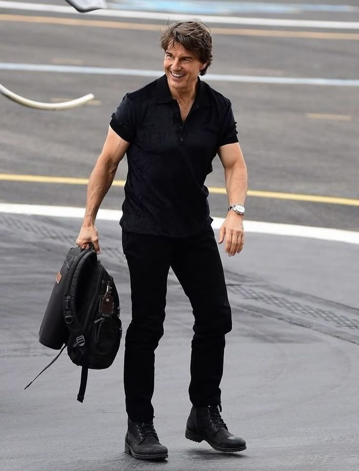 This look proves how powerful simplicity can be. A fitted black polo adds a clean, athletic edge, while slim black jeans keep everything streamlined and sharp. The black chukka boots ground the outfit with a rugged, no-nonsense finish that still feels polished. With the backpack in hand and the confident energy, the whole fit gives off effortless “ready for anything” vibes—travel, errands, or a casual day out.