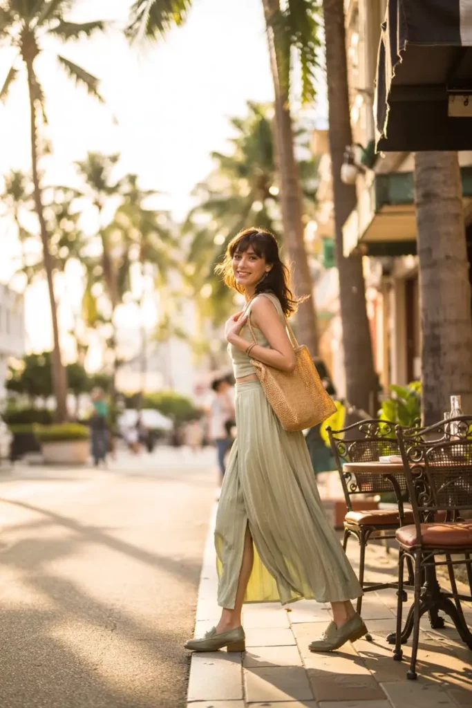A flowy maxi skirt and a cropped top create a breezy yet stylish silhouette. Add thick-soled loafers to ground the look—ideal for warm-weather days when you still want structure.