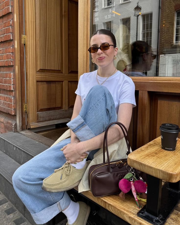 A simple white tee and light-wash denim make this outfit feel clean, relaxed, and perfect for a slow morning out. The rolled cuffs add a little structure, keeping the look neat without trying too hard.
