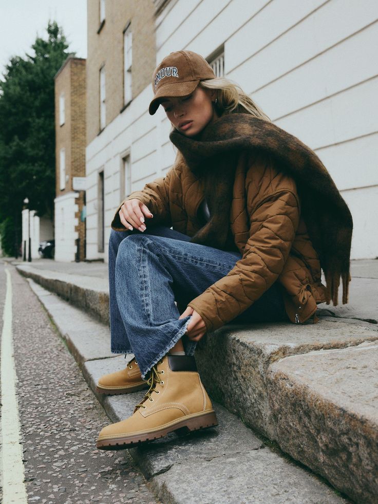 Warm tones and easy layers come together for a comfortable, city-ready look. The quilted jacket and oversized scarf bring instant coziness, while the relaxed denim keeps things casual and laid-back.