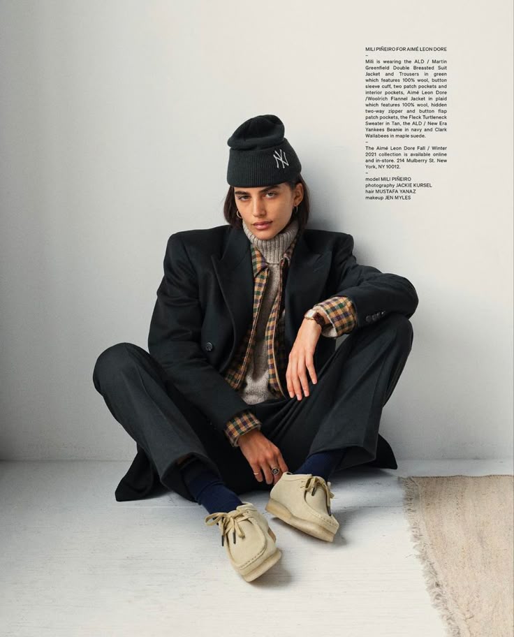 The tan chukka boots and white socks add a subtle contrast that lifts the whole look without breaking its minimal vibe. It’s simple, modern, and effortlessly stylish.
